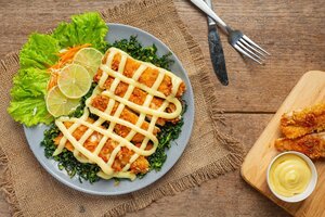น้ำสลัดครีมเข้มข้น เปรี้ยวลงตัว หอมกลิ่นมะนาว รสชาติกลมกล่อม ไม่มีผงชูรส