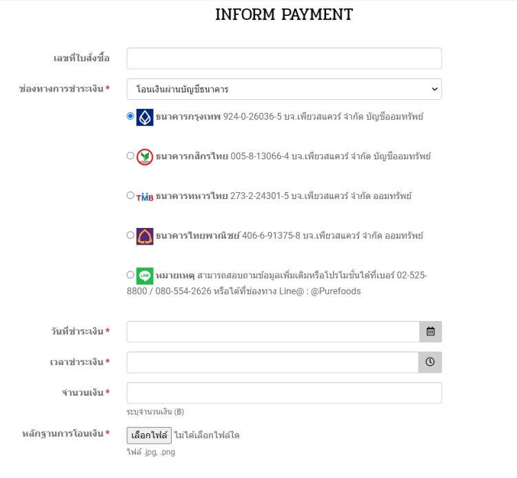 -สั่งซื้อผ่าน Line my shop Purefoods Official